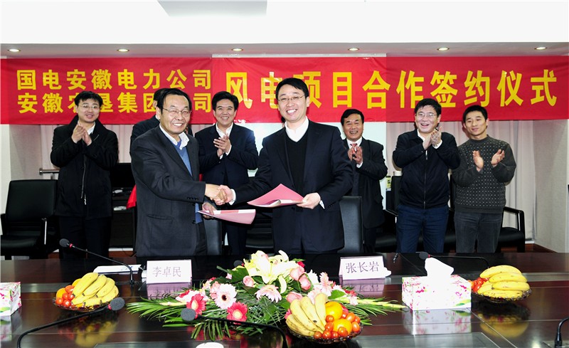 为合作开发和有效利用安徽农垦辖区风能资源,积极推进安徽农垦大的合作项目落实,2011年1月20日下午,安徽农垦集团与国电安徽电力公司在集团公司18楼会议室举行风电项目合作开发框架协议签约仪式。签约仪式由国电安徽电力公司总经理张长岩和省农垦集团公司总经理李卓民共同主持,张长岩总经理和李卓民总经理分别作为双方代表签署合作协议,省农垦集团公司纪委书记储诚胜,经济开发合作部部长汪光荣、办公室副主任鲍广云,国电安徽电力公司规划建设部副主任蓝林,国电力源电力发展公司总经理周桂冉、副总经理戴国华、规划建设部主任周宏等出席签约仪式。