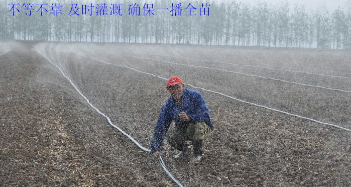 近日,在潘村湖农场第一管理区的大田里,随处可见职工家庭农场为播种不久的麦田灌溉补墒的情景。而在一路之隔的种子公司原种场稀繁田里,因为播种后马上进行了微喷灌溉,此时已经可见路路成行的青青麦苗了。