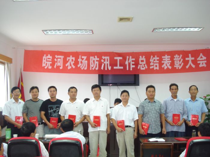 8月27日,安徽皖河农场举行防汛工作总结表彰大会,认真总结了今年防汛抗洪工作,表彰了在防汛抗洪工作中涌现出来的先进集体和先进个人,激励了广大干部职工积极投身农场经济建设。农场领导及各部门各单位主要负责人、全体受表彰对象参加了会议。
