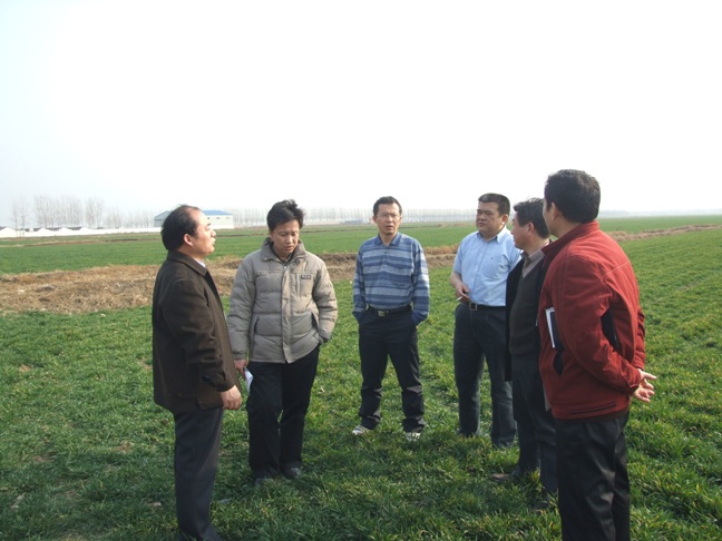 调研组一行查看了龙亢农场农业综合开发项目工程的建设、维护情况、田间小麦苗情和长势。
