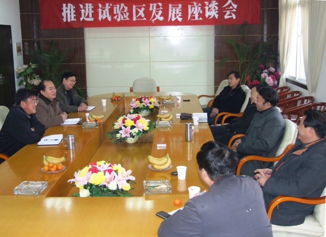 蚌埠龙亢农场现代农业自主创新综合改革试验区成立以来,得到了省农垦集团公司、蚌埠市委市政府以及怀远县委县政府的高度关注和大力支持。为进一步落实省农垦集团公司与蚌埠市委市政府关于加快推进试验区发展的要求,认真总结试验区成立以来的工作成效与经验,精心谋划明年乃至今后一个时期试验区的工作目标和任务。在龙亢农场的倡导下,试验区内相关单位负责人,在岁末年尾聚首龙亢农场,召开了此次推进试验区发展座谈会。