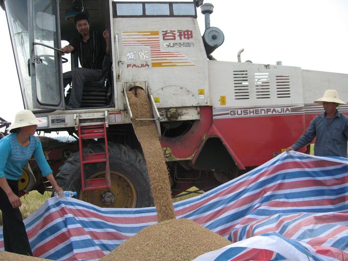 “多年连续实行的农机补贴政策,刺激了种粮大户的购买欲,不少种粮大户踊跃购买大型农机,农场甚至出现了一批农机专业户”。皖河农场农业科负责人介绍,种粮大户刘江镇一户就买了三台大型农机,其中日本产大型联合收割机就占了两台。农机专业户吴良松农忙时搞“机收经济”,农闲时又忙于农机修理。据不完全统计,这个农场全场现有大型联合收割机40多台。