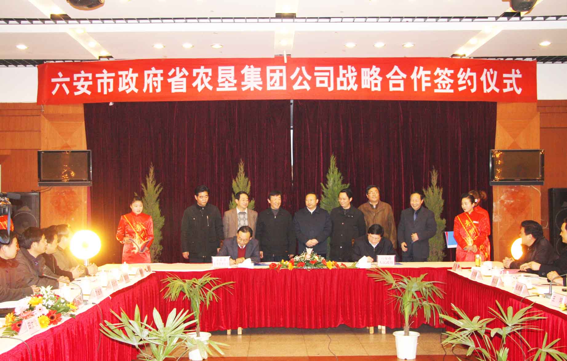 仪式上,六安市副市长王翔与安徽省农垦集团公司总经理李卓民签订了六安市政府与安徽省农垦集团公司战略框架协议。县委书记、县长张绪鹏与寿西湖农场、正阳关农场场长刘国强签订了寿县县政府与寿西湖农场共建寿县工业园区补充协议。