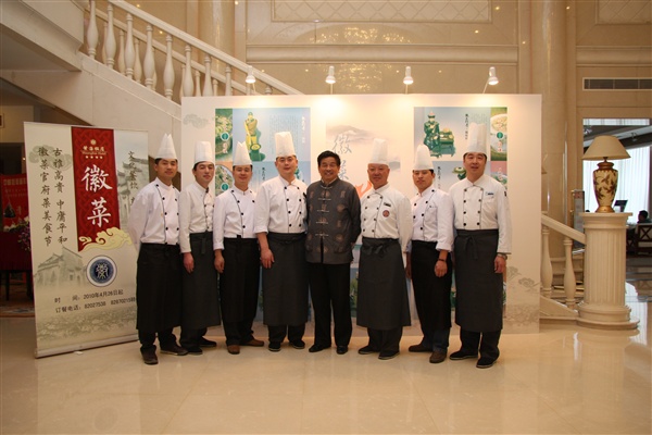 日前,应青岛市著名四星级旅游饭店、友谊集团成员——黄海饭店邀请,安徽农垦所属黄山大厦金色王朝餐饮公司由省烹饪协会副会长、中华餐饮服务大师鲍兴带队,金色王朝金长宏、杨建、陈文富等厨师长组队赴青岛举办“黄海饭店徽菜官府菜美食节”活动并取得圆满成功。