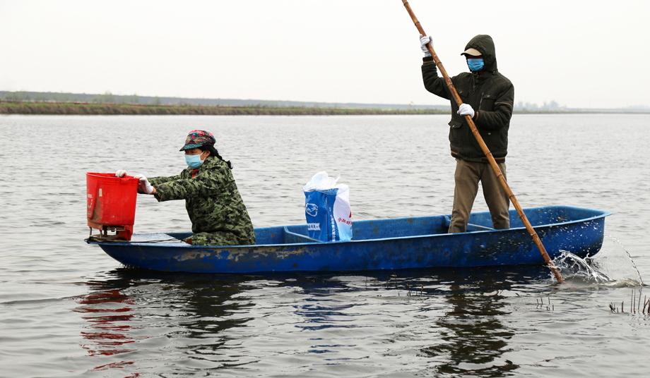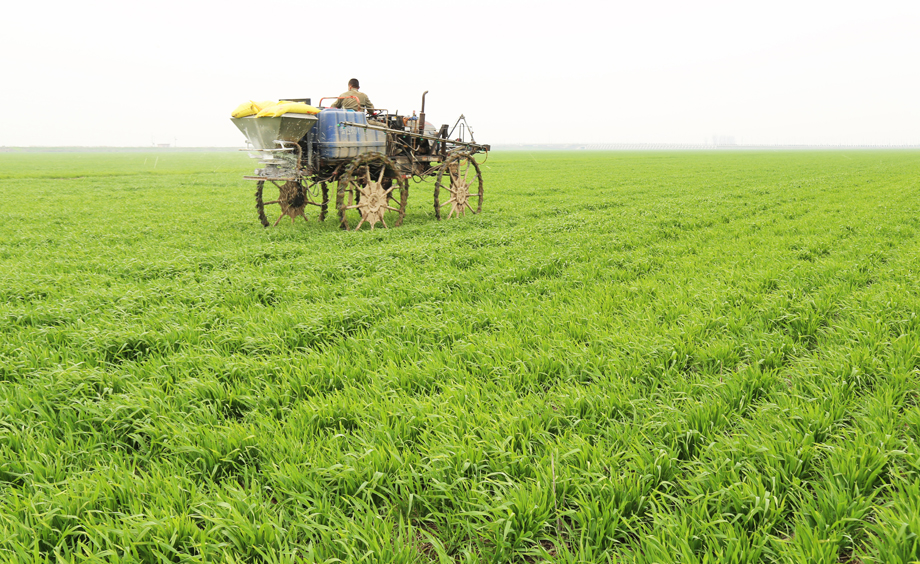 3月5日,惊蛰时节春耕忙,不误农时不负春。华阳河农场公司10万余亩农田里的小麦、瓜蒌和稻虾种养进入春季田管的关键时期。在这晴雨相间的日子里,家庭农场职工见缝插针,抢抓雨停间隙,实施春季管理,田间地头处处是忙碌的身影。0.6万亩瓜蒌处在出苗期,瓜农在架下补网、铺设农膜;4.3万亩小麦进入拔节孕穗期,麦农采用自动施肥机或大型机械撒施小麦孕穗肥;5.5万亩稻虾田里,虾农使用喂料机忙着给小龙虾投喂饲料。(李龙)
