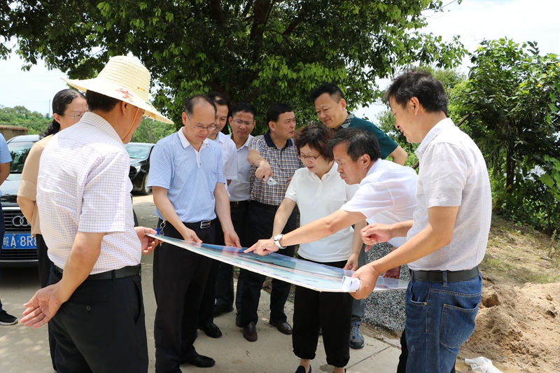 农垦集团党委书记、董事长詹先豪和安庆市人民政府副市长王爱武(右三)共同督查同马大堤防汛工作