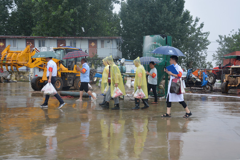 阜南县人大常委会领导率医务人员冒雨看望慰问阜濛农场受灾群众