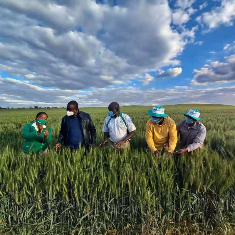 图为津巴布韦农业部专家在皖津公司查看小麦长势