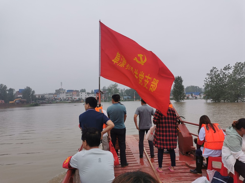 对于地处濛洼蓄洪区的阜濛农场来说,自建场以来这已是第16次蓄洪。蓄洪前,阜濛公司党委迅即反应,连夜行动,在7小时内完成人员转移和财产转移任务,确保了受灾群众“有吃、有住、有医、有序、无伤亡”。农场党委成立三个临时党支部分别驻点三个庄台,设立了党员先锋岗,为职工群众提供暖心服务。在当地政府支持下,农场专门租用了一条渡船,每天上午8点至下午4点,往返于三个庄台与安全岗之间,为安置点群众送去新鲜蔬菜,肉类,应急药品、消毒物品等物资,确保日常生活条件。有人说,蓄洪以后庄台成了孤岛。受灾群众说:“孤岛不孤,紧要的关头,党组织是咱的主心骨!”