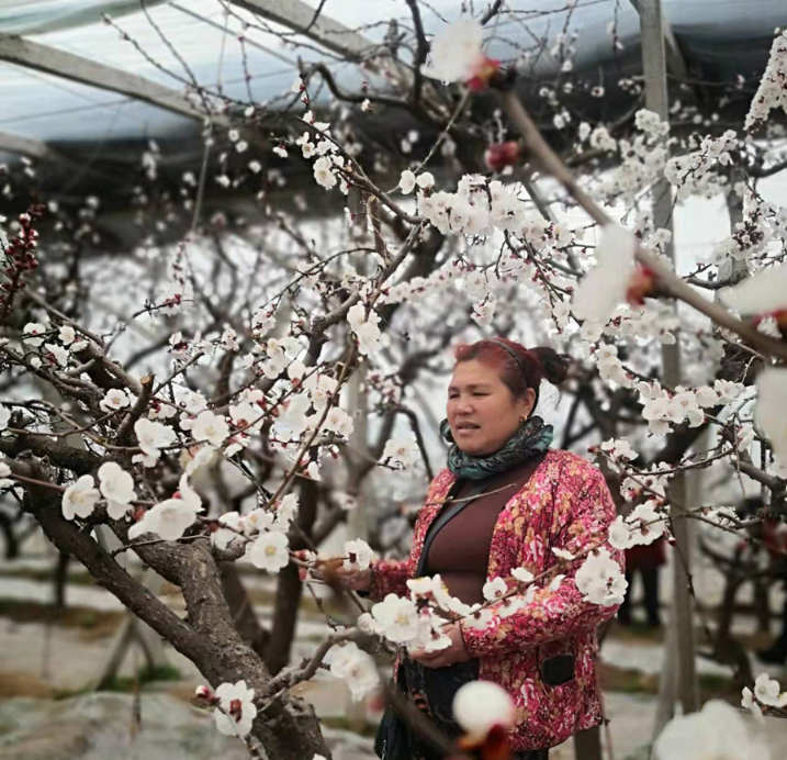 大棚杏花开 职工授粉忙