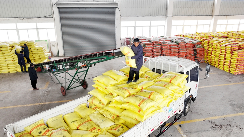2月28日,龙亢农服公司组织开展农资配送。李峰 摄
