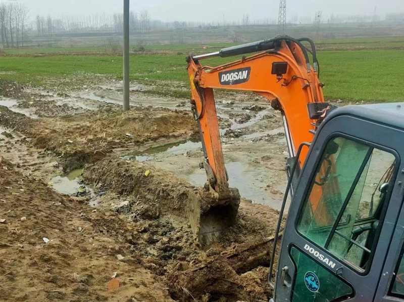 3月1日,由于连日阴雨天气,潘村湖农场公司在寿县托管土地及时清沟沥水,确保沟系畅通,预防渍害发生。供图:蒋俊