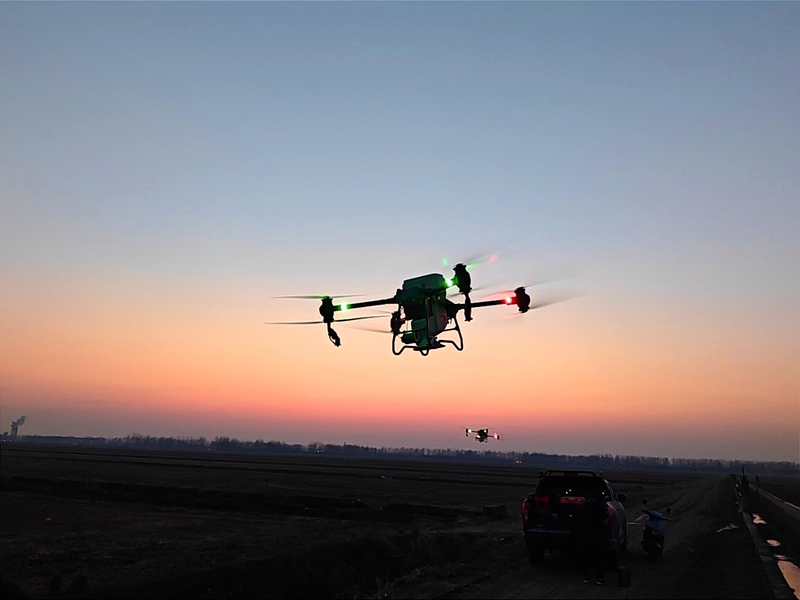 3月1日,淮南农场公司使用无人机实施田间施肥。董俊霆 摄