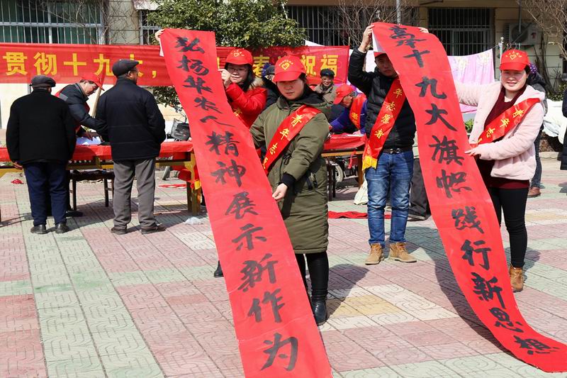 俗话说“无联不成春,有联春更浓”。2018年春节,是党的十九大召开后的第一个新春佳节。农场将学习宣传贯彻十九大精神与传统年俗文化结合起来,以“深入贯彻十九大.喜迎新春送祝福”为主题,通过书写春联进社区活动,将党的好政策、群众的美好生活向往融入喜庆的春联中,在送上祝福、增添年味的同时,将十九大精神传递到百户千家,进一步营造学习宣传贯彻十九大精神的浓厚氛围。