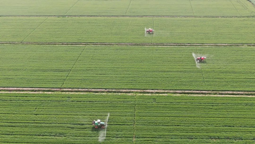 当前,沿淮地区小麦正值抽穗扬花关键期,农垦集团抢抓赤霉病防控“窗口期”,全面启动沿淮小麦“一喷三防”统防统治工作。防治依托无人机飞防“快速”“精准”的技术优势,结合传统植保机械高效协同,以科技赋能田间管理,筑牢夏粮稳产提质防线。截至4月22日,农垦小麦首遍防治面积133.8万亩(其中垦区内防治已完成),防治率82.45%;第二遍防治面积31万亩,防治率19.14%;部分农场已陆续开始第三遍防治。