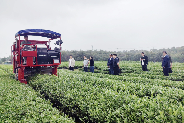 10月16日,茶业集团在十字铺茶场组织开展“乘坐式”采茶机采茶作业和初制茶自动化生产线调试现场观摩,交流研讨茶园绿色植保技术。茶业集团及所属涉茶企业分管负责人、农业和经营部门负责人参加现场观摩。