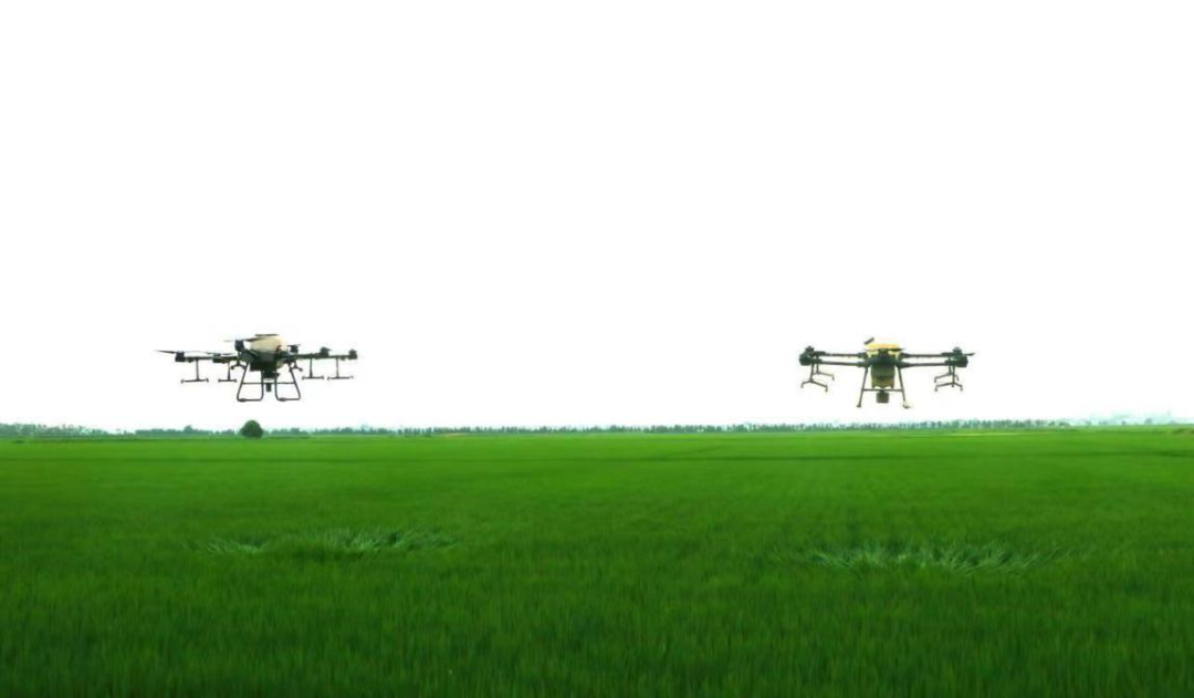皖河农场无人机植保作业。(徐丽燕 摄)