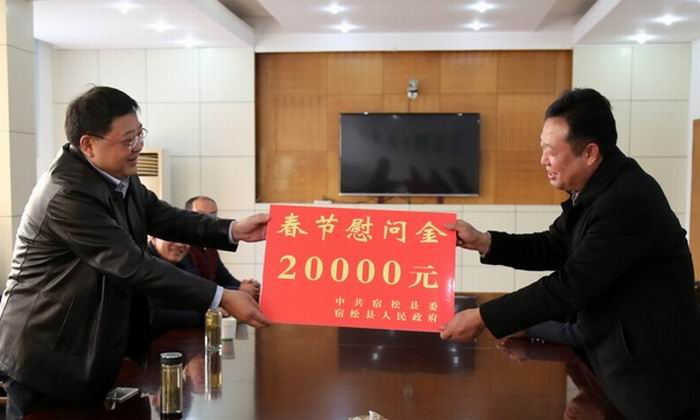 1月23日,宿松县委副书记罗敏、人大副主任石锦华、政协副主席郭斯文率县委办、民政局等单位负责人一行,春节前夕在华阳河农场走访慰问。