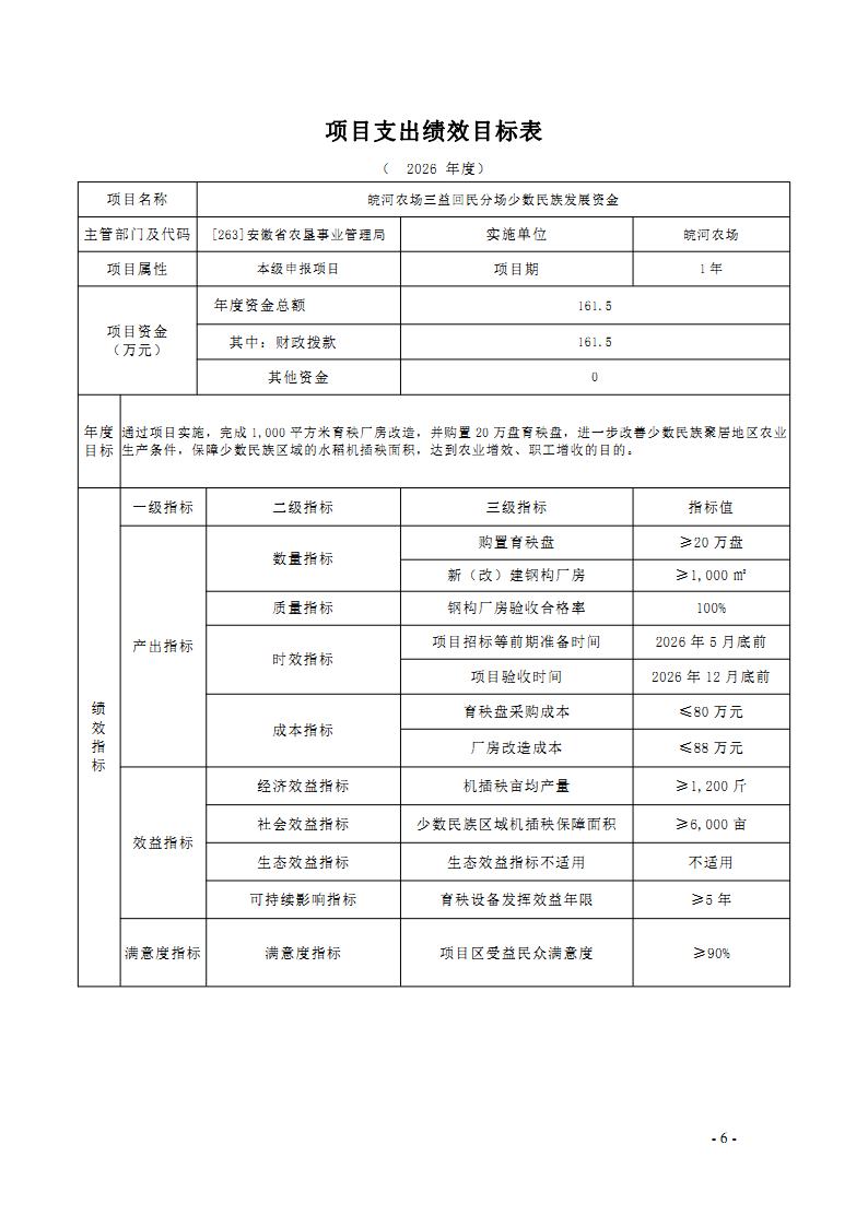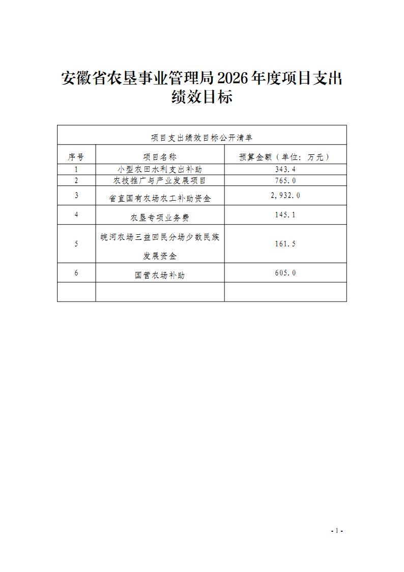 安徽省农垦事业管理局2026年部门预算批复的其他项目绩效目标