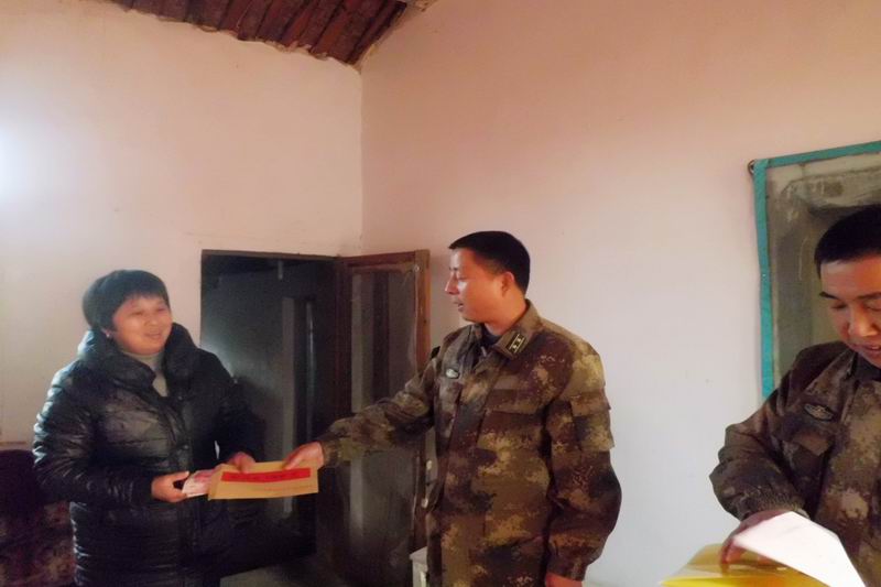 时值岁末年初,12月17日,明光市人武部肖运金副部长率政工科负责人一行,到白米山农场军属郑双印、李怀玲夫妇家中走访,并送去慰问金。