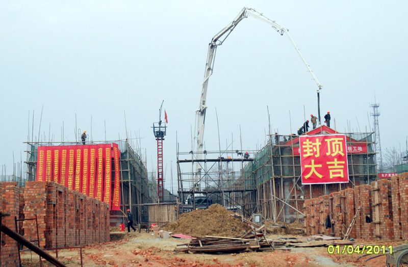 4月1日上午8点18分,敬亭山茶场在绿雪花园东区举行廉租房封顶仪式。各相关单位和职工群众前来表示祝贺。