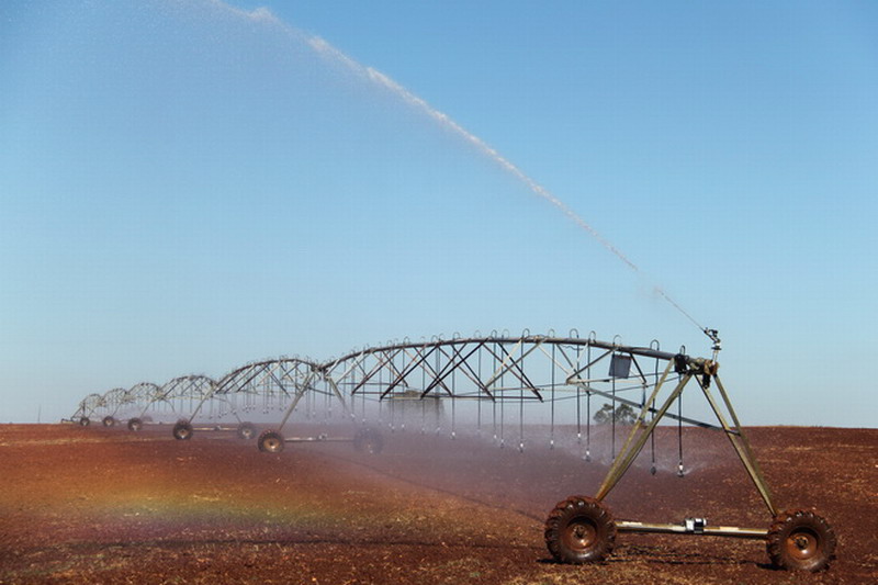 皖津公司继完成小麦播种任务之后,又奏起了喷灌的冲锋号角。自5月17日开始,皖津农场边播边喷边排查问题,但由于地下管道年久失修,隐患之处很多,直至5月31日,皖津温亚尼农场地下管道漏点问题才逐个排查抢修完毕,南北两个泵站及管路基本恢复工作状态,各级泵组工作正常,状态良好,三级提水畅通。一时间,田间大型喷灌机与地面管道同时起喷,阳光下划出一道道美丽彩虹,繁星中点缀出钻石般的剔透。