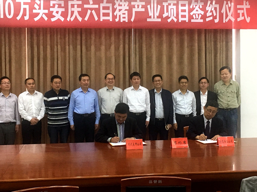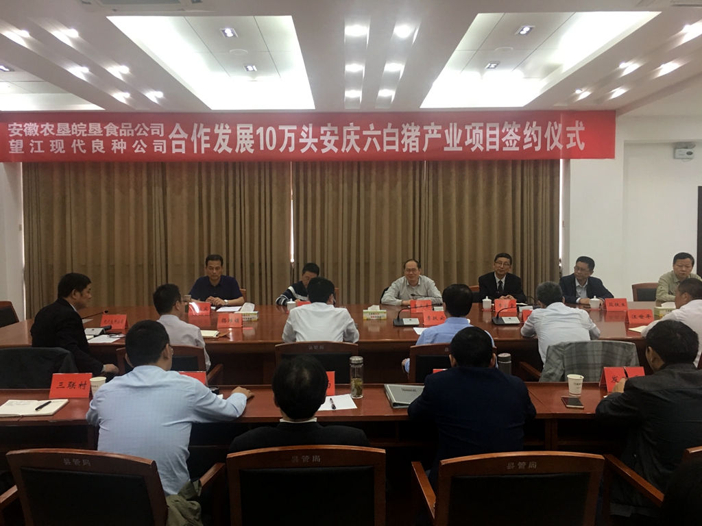 皖垦食品公司与望江现代养殖公司合作发展10万头安庆六白猪产业项目隆重举行签约仪式