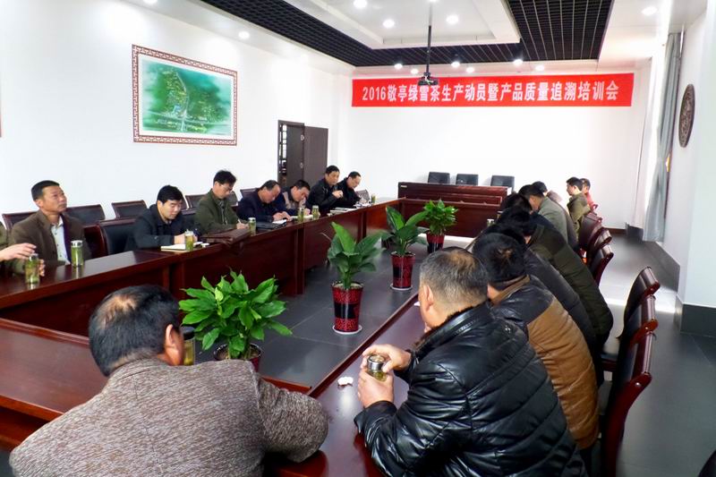 会议安排部署了春茶生产中不良天气应对、产品质量安全管控、追溯系统管理功能拓展等工作。会议要求,各相关单位要切实抓好春茶生产的采、制、销各环节工作,帮助茶农提高食品安全、质量追溯意识,提升质量、塑造品牌;技术人员要做到“勤、严、实”,推进敬亭绿雪产品信息平台建设,切实保障历史文化名茶的高品质、好品牌。(王剑亮)