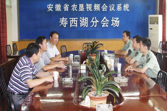7月21日下午,寿县县委常委、人武部政委朱瑞华、部长许道昌一行到寿西湖农场来调研。场党委副书记王苏平向来宾介绍了农场现代农业、工业化、城镇化等方面的发展建设情况。双方就进一步规范征兵工作、加强民兵预备役建设等方面工作进行了交流探讨,还就“八一”建军节期间举办军民联欢文艺汇演的相关事宜进行了沟通安排。