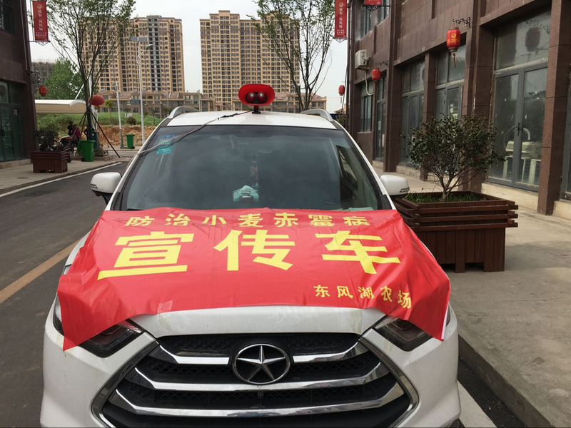 为确保“一喷三防”工作落到实处,严防小麦赤霉病发生,连日来,东风湖农场改变往年以会议部署为主的方法,在场属各农业单位醒目之地悬挂赤霉病防治宣传条幅,启用流动宣传车开往田间地头、职工居住点进行重点宣传,农技人员上门入户耐心讲解技术要点,让“一喷三防”家喻户晓、人尽皆知。