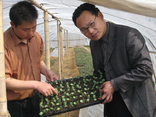 3月10日上午,四川国豪种业技术员在皖河农场大棚西瓜新品种示范基地察看苗情。据技术人员介绍:这批西瓜分别为供应高端市场的皖系和川系两个新品系,2月初开始育苗,采取“早春电热线增温+穴盘基质育苗”新技术,以保持大棚内温度和科学育苗,具有省工节本、操作简便、易于运输等优势,可使西瓜成苗率高,苗齐苗壮、增产增效。