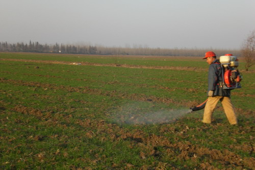 近日来,大圹圩农场农业管理区抢抓有利天气,结合麦田苗情、草情,适时对部分早播麦田杂草进行化除。 随着麦田草相的不断变化,看麦娘、日本看麦娘、罔草等禾本科杂草逐渐成为麦田的优势种群,也是当前化除工作的重点、难点。近年来,由于长期使用骠马,部分田块已产生较强的抗药性,而采取药剂轮用、药剂混用是缓解抗性、科学防治的有效技术措施。为了切实选好药剂,提高化除效果,农场及时召开会议,对有关工作进行了布置和落实;场植保部门也提前制定了麦田化除意见,并形成“明白纸”,印发到各农业管理区张贴、宣传,切实指导种植针对麦田杂草特点,对症合理配方,科学安全用药。图为农业第二管理家庭农场职工在承包田里施药除草。(夏庆芳)
