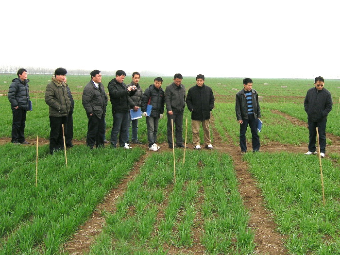 3月3日,在安徽省潘村湖农场一块麦田里,基层农技人员和家庭农场职工正在听取农业部小麦专家组成员、安徽省小麦高产攻关首席专家马传喜教授(右三)作的当前小麦田间管理工技术要点现场培训。该场通过与多家科研院所建立“科企联姻”协作关系,定期邀请农业专家到农场开展农技服务活动,提高了农场职工科学种田水平。(杨登宏摄)