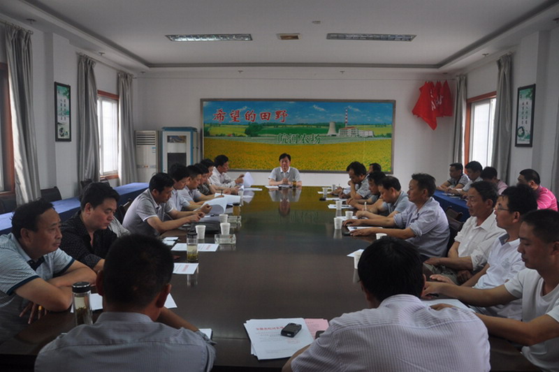 会上传达学习了李克强总理对血吸虫病防治工作的重要批示和刘延东副总理在全国血防工作会议上的讲话精神、詹夏来常务副省长在全省血防工作会议上的讲话精神和农垦血防工作会议精神,总结了上年度全场血防达标工作成绩,指出了存在问题和薄弱环节,明确了今年血防工作的指导意见,与辖区14个单位签订了责任书,并就落实基本公共卫生服务作了安排。
