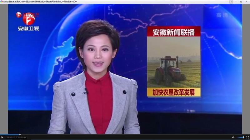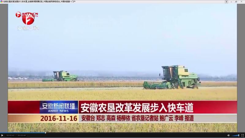 记者郑志:“这里是位于怀远县的龙亢农场,眼下,农场20000多亩的优质水稻已经进入成熟期,喜迎收获。农场出动了500多台套的大型机械,正在进行统一的收割、耕种一体化作业”。