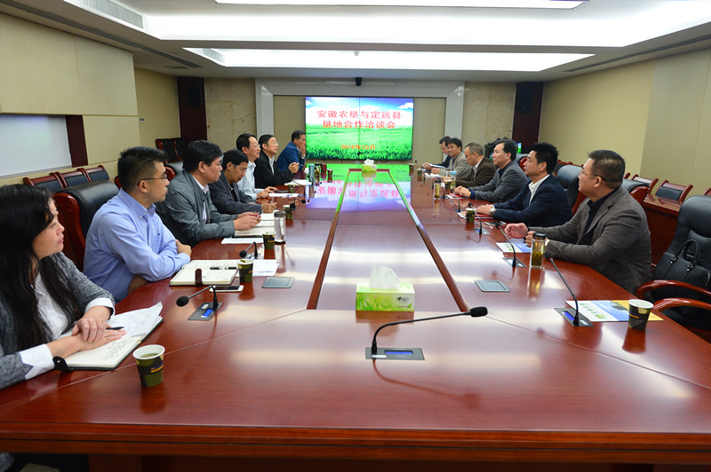 刘超对阳光电源、定远县、温氏集团客人到访表示欢迎,介绍了安徽农垦改革发展情况,表示要按照互惠互利、共赢发展的理念,务实洽谈合作,促进项目落地。(郑颖睿)