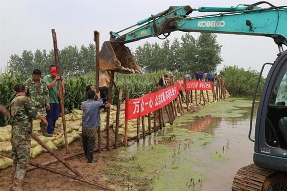 77清晨4点,华阳河五场80多人的党员突击队抢险队就开始了抢筑西圩生命圩堤的战斗。党员抢险队队员们顶着烈日,打桩、运桩、装包、杠包,压包,汗水裹着泥水,争分夺秒,奋力封堵着缺口直到上午10时,那些没有来得吃早饭的队员们简单地吃点饼干,喝点矿泉水,又继续投入战斗,傍晚7点多钟。历时14个小时,共动用挖掘机2台,打木桩100余根,码放编织袋2000余包,抢打隔堤高程达18.5,成功完成了缺口封堵,保住了西圩生命线,创造了溃口重建的奇迹
