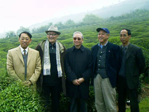 编者按:作者王火(1924-):(图片中者) 为中 国 作协名誉委员、四川省作协名誉副主席。作品60 0余 万字,代表作《战争和人》三部曲曾获第二届国家 图书 奖、第四届茅盾文学奖、炎黄杯人民文学奖及“八 五” 期间优秀长篇小说奖。2003年4月上旬,安徽 省文 联与安徽省敬亭山茶场举办首届“敬亭绿雪”笔 会,研 讨茶文化,游览宣城敬亭山,赏景品茗,又去茔山 考 察。作家王火在茶场即兴写下了“敬亭绿雪”记, 特予 刊载。图片左一为省文联书记处书记、著名书法家 吴 雪,左二为省文联名誉主席、著名作家鲁彦周,右 二为 著名作家、原中国作协副主席、党组书记邓友梅, 右一 为敬亭山茶场场长林启仁。他们兴致勃勃地在敬亭 山茶 场茶园合影留念。