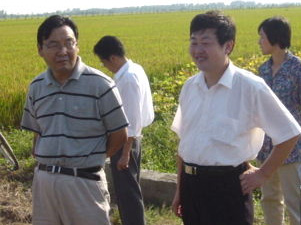 李总一行在场领导徐成银、李斌等同志的陪同下, 实地察看了六分场、四分场、七分场机插秧田块水 稻长势情况,听取了我场农技人员有关项目实施情 况的汇报。检查验收组的同志一致认为,我场水稻 机插秧项目由于精心组织,措施得力,达到了预期 的效果,取得了圆满成功。