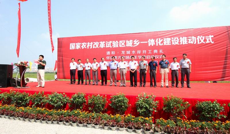 试验区三大重点项目在本次活动中“燃爆”,即,通和·龙城水岸房地产项目开工典礼、怀远龙亢农场禹王学校启动和国家级科技园区项目提档升级。其中,通和·龙城水岸项目作为试验区城乡一体化的重点工程,开发建筑总面积近20万平米,建设住宅1500多套、商用房2.