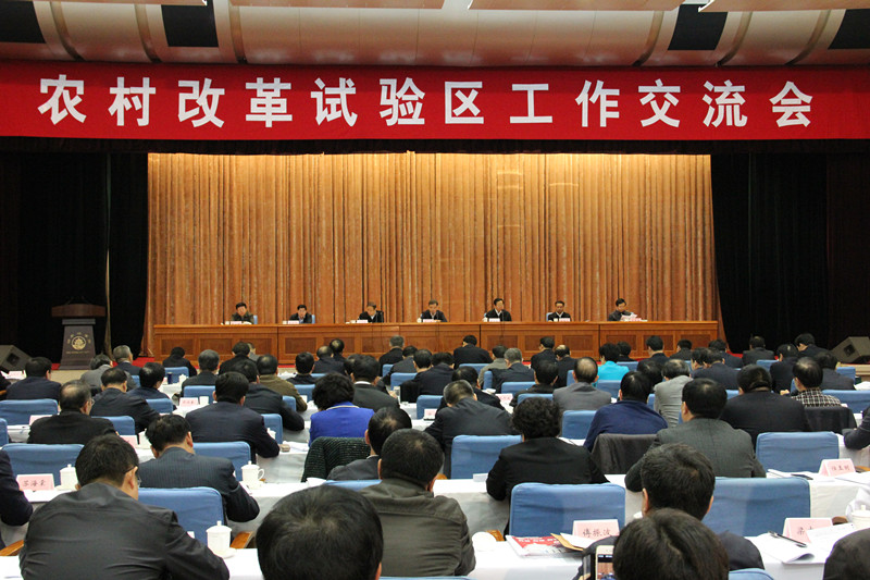 农村改革试验区工作交流会11月29日在安徽合肥召开,国务院副总理汪洋出席会议并讲话。他强调,要深入贯彻落实党的十八届三中、四中全会精神,按照习近平总书记关于农业农村发展“五新”的重要指示精神、李克强总理关于扎实做好农村改革试点工作的要求,发挥好试验区的先行先试作用,努力创造更多鲜活实践经验,不断把农村改革引向深入。农业部部长韩长赋主持会议,安徽省省长王学军致辞,中央农村工作领导小组副组长、中央农办主任陈锡文,中央农村工作领导小组副组长袁纯清,国务院副秘书长毕井泉,国研室副主任黄守宏,我省领导李锦斌、梁卫国及省政府秘书长邵国荷参加会议。