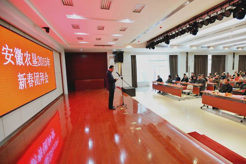 农历羊年春节临近之际,2月13日下午,安徽农垦2015新春团拜会简朴举行。集团总经理、党委副书记李卓民发表致辞,副总经理刘超主持会议,董事长、党委书记田文俊等集团班子成员以及离退休老同志代表、机关全体工作人员参加团拜会。