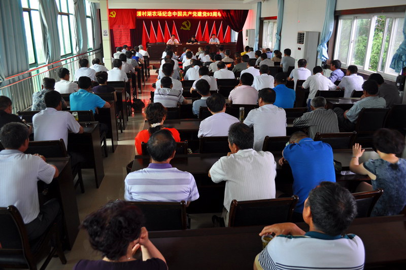 在7月1日上午召开的纪念大会上,柏华胜结合党风党史党情,给与会党员上了一堂精彩生动的党课报告。他首先代表场党委向全场广大共产党员致以节日的问候,向受到表彰的先进党组织和先进个人表示热烈的祝贺。在回顾了中国共产党成立93年来的光辉历程后,柏华胜指出,在党的正确领导下,伴随着祖国的不断繁荣昌盛,我们潘村湖农场也发生了翻天覆地的变化。特别是近年来,全场各级党组织贯彻落实科学发展观,紧紧围绕农场“十二五”规划纲要,以调整农业结构、优化产业布局、促进职工增收为主线,抢抓机遇,狠抓落实,农场综合实力显著增强,经济和社会事业快速发展,职工群众安居乐业。2014年午季取得了全场小麦单产总产双超历史的大丰收。成绩的取得,得益于我们坚持不懈地加强和改进党的建设,得益于全场各级党组织团结带领职工群众解放思想、开拓创新、真抓实干的不懈努力,得益于每一名共产党员的无私奉献精神。柏华胜还从进一步健全制度机制、加强基层党建工作,不断提升职工素质、促进农场经济发展,鼓足抓好落实的干劲、全面推进各项工作三个方面对做好当前和下半年工作作了部署安排。