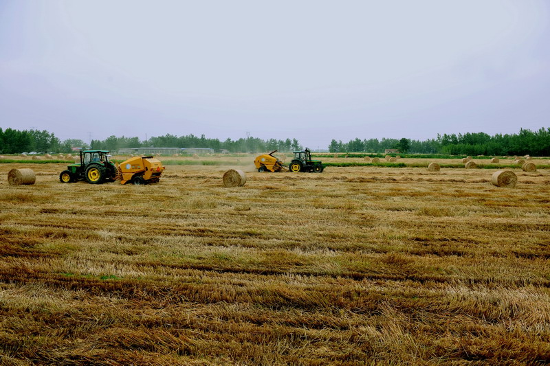 今年麦收以来,安徽农垦各农场建立禁烧工作责任制,小麦秸秆禁烧、还田实现“全覆盖”。淮南农场对秸秆还田、捡拾打捆给予家庭农场补贴奖励。农场6000亩秸秆还田,12000亩秸秆捡拾打捆,预计小麦秸秆总打捆量可达4.8万吨,补贴奖励总额达90万元。图为淮南农场秸秆打捆作业现场。(经济日报2014年6月12日16版,鲍广云摄影报道)