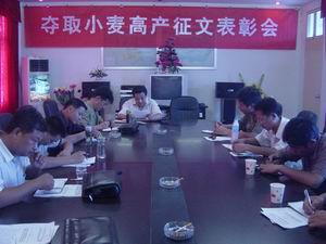 8月16日下午,场工会在农技服务中心会议室召开了 “怎样夺取小麦高产”有奖征文颁奖会。会议由场 工会主席沈永辉同志主持,各农业分场场长、农业 技术员、获奖征文作者及农技服务中心领导同志参 加了会议。+今年午季,全场小麦生产取得了丰产丰 收,单产、总产均创历史最好水平。为了配合农场 及时总结好小麦生产经验,提高职工整体种田水 平,促进农业生产再上新台阶,场午收夏种工作结 束后,场工会和场农技推广服务中心联合开展了 《怎样夺取小麦高产》有奖征文活动,农业单位干 部职工积极撰文参评。近日,由场领导和专业技术 人员组成的“有奖征文评选小组”对所征集到的论 文进行了认真阅评打分,评出一等奖1篇,论文作者 是陶先斌;二等奖2篇,作者分别是陈刚、陈维华; 三等奖3篇,作者分别是郑光学、周颂平、王国朝。 另外,还有7篇论文获入围奖。+颁奖会上,获奖论 文作者分别宣读了各自所撰写的论文。他们从不同 角度,不同层面,结合本场本单位及个人多年来从 事小麦生产的经验教训,成败得失,理论联系实 际,就如何夺取小麦高产进行了深入浅出地分析阐 述。与会人员认为,大家座在一起,通过论文来交 流和探讨怎样夺取小麦高产问题,受益匪浅,对今 后从事农业生产将有很大启发和帮助,希望有关部 门能多组织一些类似的活动,宣传普及农业科技知 识,提高职工农业生产能力。+场工会主席在会议总 结讲话时指出,这次会议既是对本次有奖征文活动 的总结,又是场工会有计划、有步骤实施“职工素 质建设工程”的开始。今后,场工会将通过开展形 式多样的活动,加强对职工的教育和培训,不断提 高职工的整体素质和综合能力,依靠职工的群体力 量和智慧,推动农场农业生产和各项工作再上新台 阶。对本次所征集到的好的论文,场工会将整理汇 编成册,并通过广播、简报及培训班等形式,在农 业职工群众中广泛宣传,以指导帮助农业职工进行 科学种田,进一步挖掘小麦生产潜力,力争明年各 户的小麦生产都能取得好收成。会议结束时,沈永 辉主席给获奖论文作者颁发了奖金。 (夏庆芳)