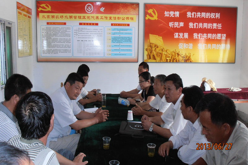 今年以来,为探索完善党代会闭会期间发挥党代表作用的有效途径,推进党代表履职制度化和常态化,水家湖农场党委围绕“知党情、听民声、谋发展、促和谐”主题,充实和加强基层党组织建设,在水湖、马厂两个管理区设立了2个党代表工作室示范点,共确定基层联络员59名。