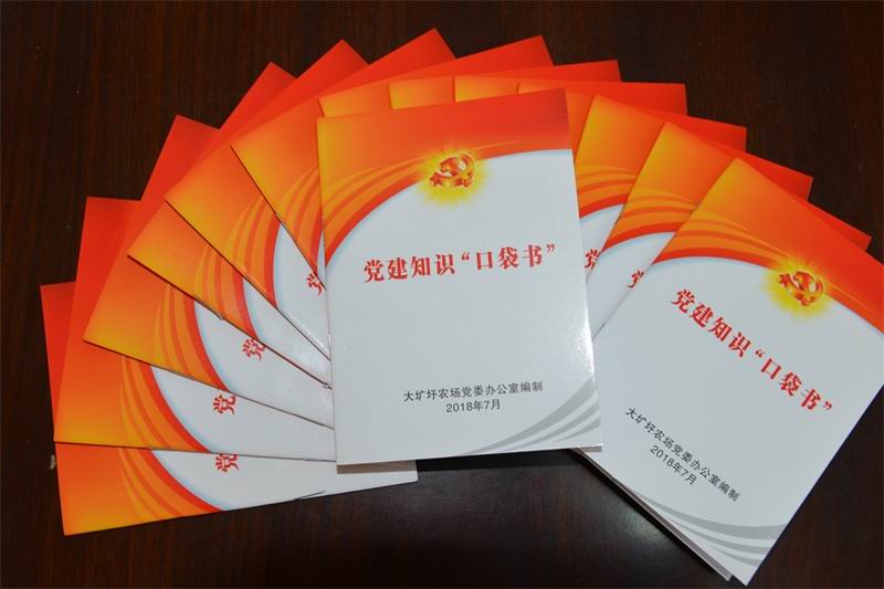 为深入学习贯彻习近平新时代中国特色社会主义思想和党的十九大精神,近日,大圹圩农场党办编印《党建知识“口袋书”》,分发给全场党员,人手一册,方便党员学习。《党建知识“口袋书”》突出党的政治理论,精选了党的基本知识、十八大和十九大报告、习近平新时代中国特色社会主义思想等知识,内容简洁明了、便于记忆掌握,让党员们可充分利用工作间隙和业余时间,随时随地查阅学习,让党的最新理论成果既进口袋、又入脑袋,成为全场党员武装头脑、指导实践的必备“法宝”。