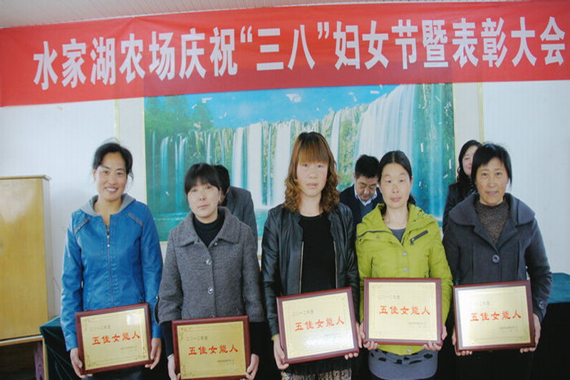 水家湖农场召开庆“三八”表彰大会,表彰了10户“诚信家庭”、“十佳女职工”、“五佳女能人”和10名“好媳妇”,4名受奖代表作了交流发言,表示要以积极的心态、饱满的热情投身农场经济建设主战场,在农业发展、体制改革、项目工作、民生工程、场镇建设、环境改善等各项工作实践中找准位置、创造业绩、展示风采。皖河农场邀请安庆市大观区司法局、妇联前来开展《妇女权益保护法》、《家庭教育报》、《婚前健康检查》等咨询活动,加强法制宣传教育,强化了妇女维权意识,促进了农场和谐稳定;同时,该场还举办女职工联欢会、评选表彰了“十佳好媳妇”,弘扬了中华民族传统美德,营造了尊老、敬老、爱老正能量。正阳关农场举行女职工座谈会,与会女工畅谈农场日新月异的变化和逐渐提高的生活水平,表示要继续发挥“半边天”作用,为农场科学和谐发展贡献力量。