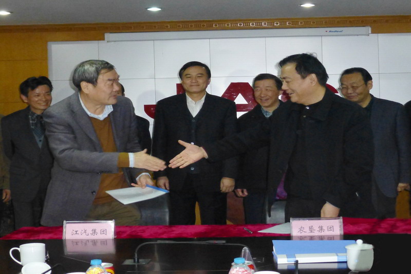 签约仪式由江汽集团副总裁王志远主持,江汽集团董事长安进、农垦集团董事长田文俊先后讲话。安进在讲话中表示,江汽与农垦有着深厚的历史渊源,个人也有在农垦学习和生活的经历,对自身工作始终坚持务实作风有着深远的影响,这次双方实现合作,农垦集团参与合肥车桥厂主辅分离改制工作,我们发挥各自优势,共同寻找到了一个好的合作切入点,目的是让职工满意、国资增效,我对合作成功充满信心。田文俊在讲话中指出,农垦与江汽同为省属企业,江淮汽车从兵团时期的一个小厂,现已发展成为年综合生产汽车80万辆、总资产300亿元的大型国有企业集团,不仅在安徽而且在全国汽车制造业都是个奇迹,这与江汽集团突出主业、始终走专业化发展之路分不开;安徽农垦近年来经济社会也得到了快速发展,具有房地产运作开发的优势。这次合作是一次互利双赢的战略合作,相信在省国资委领导下,双方合作一定能取得成功。省农垦集团总经理李卓民参加了签约仪式,他表示,为有效地开展合作,农垦已针对合作项目在人力、资金等方面作了前期安排和准备,要以此次签约为起点,按照框架协议的约定,尽快开展工作,加快项目推进。