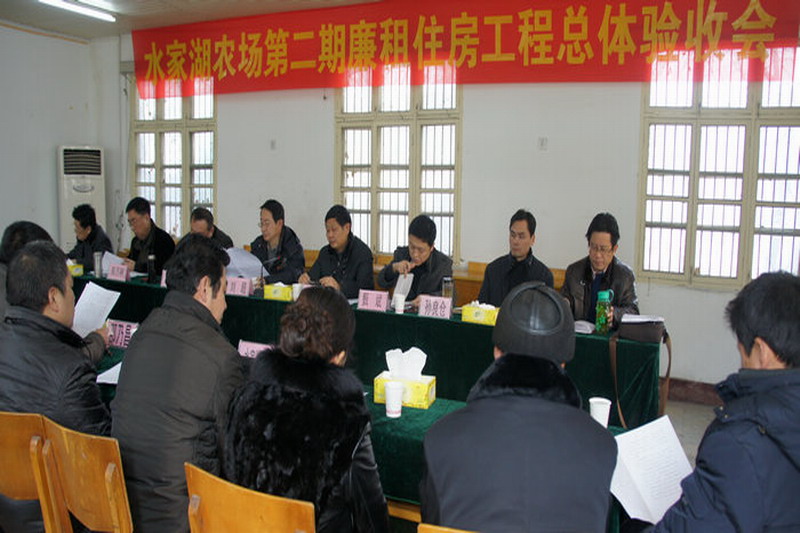 该农场位于金秋花园东区的二期187套廉租房项目,占地6285.91平方米,总建筑面积 9510.70平方米,于2010年10月19日破土开工,在农场、监理、施工三方共同努力下,经过两年多的施工建设,现已圆满完工,于2013年1月7日顺利通过了长丰县质检站初验。总体验收组深入到廉租房现场,严格按国家规范要求,就工程整体外观、施工质量、附属设施、户型结构、水电配套等建设内容进行了细致地验收,对地面墙面平整度、门窗安装、小区道路、环境绿化等方面给予了较高评价。